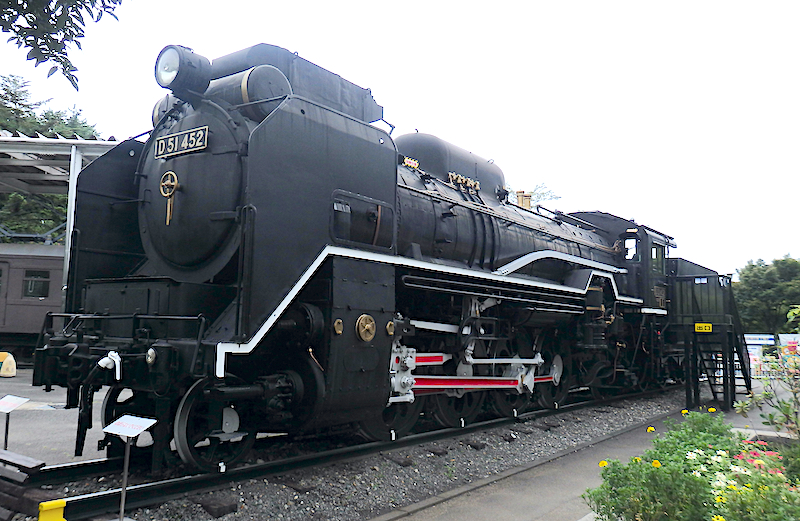 昭和15年(1940)2月28日、汽車会社製(製造番号1871)。新製後、原ノ町区に配属され東北本線を中心に働く。のち長町ー青森と移り43ー10前後に関西は竜華区に移籍、最後は関西本線などで活躍し47年5月に廃車となった。ちょうどこの年が鉄道100年にあたり、「人気のD51を青梅にも」という声で同機が選ばれ搬入された。鷹取式集煙装置付きの山越えスタイルのまま展示されている。